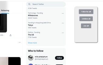Mass follow for Twitter là một tiện ích mở rộng đa tính năng cho trình duyệt Chrome cho phép người dùng dễ dàng theo dõi và bỏ theo dõi hàng loạt trên Twitter. Được phát triển bởi hamingoearnest, công cụ Twitter không chính thức này được thiết kế để đơn giản hóa quá trình theo dõi và bỏ theo dõi nhiều người dùng cũng như thích tweet hàng loạt.